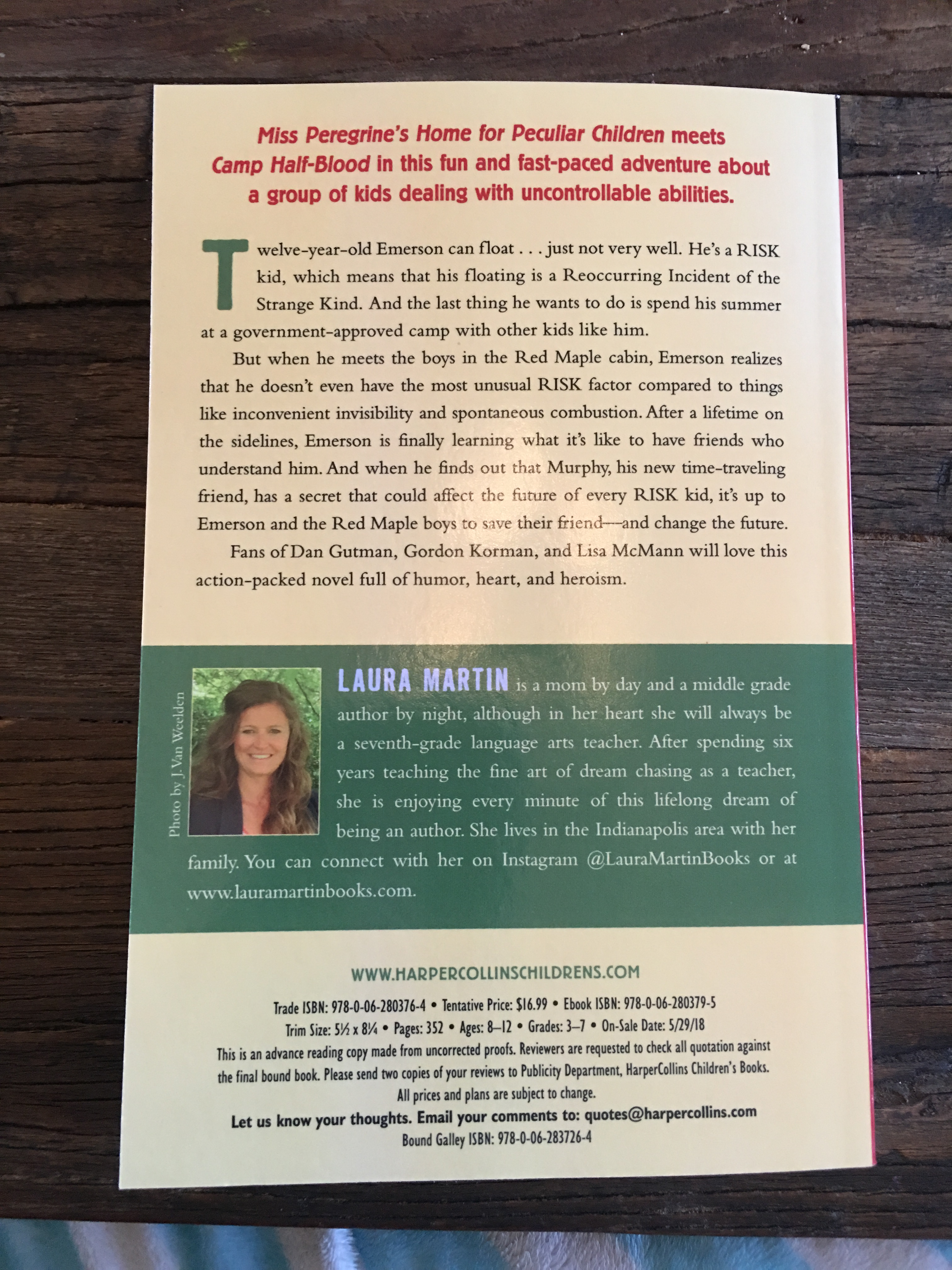 Without his weighted vest and shoes, he’s in danger of drifting all the way up to the moon. His uncontrollable floating is classified as Reoccurring Incidents of the Strange Kind, or his RISK factor. It’s alienated him from non-RISK people throughout his life, and now it’s landed him in a government-funded summer camp for RISK kids. This camp is the last place Emerson wants to be, but when he meets the other boys in the Red Maple cabin, he’s surprised to realize that this summer might not be so bad after all. That is, until he discovers that his new time-traveling friend, Murphy, is hiding a secret that threatens all of their lives. Now it’s up to Emerson and the Red Maple boys to save themselves—and everyone like them.