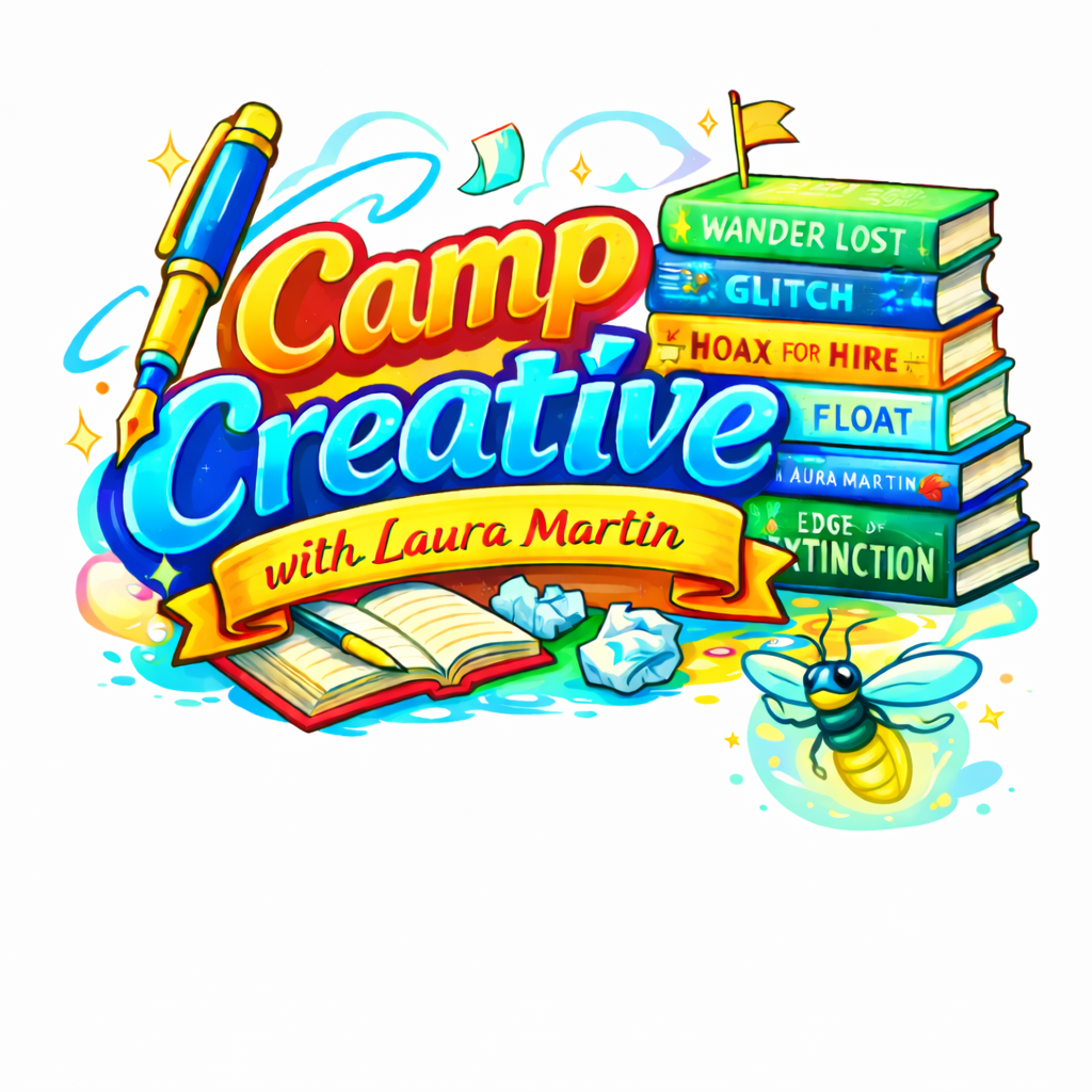 Camp Creative is a creative writing camp run by ME, Laura Martin, out of my home here in Indianapolis. As a former English teacher turned author, I missed having the opportunity to work with young aspiring writers. I wanted to craft the camp that I would have LOVED as a kid. A camp that would have inspired me to chase after this crazy dream of writing. So I designed Camp Creative with the tools, the mini-lessons, the mentor texts, and the guidance I would have loved to have had as a kid.